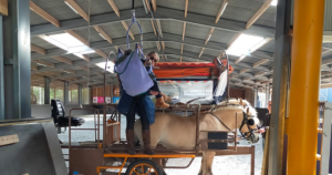 We beschikken over verschillende soorten zadels en aangepaste materialen om dat mogelijk te maken. Voor wie niet zelf op het paard kan klimmen is er een tillift aanwezig.